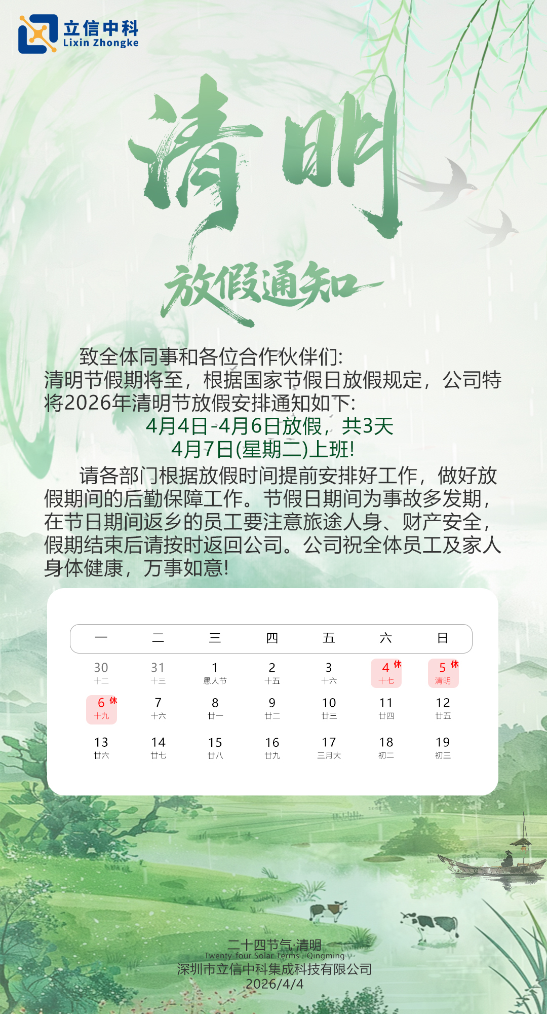清明節假期將至,根據國家節假日放假規定,公司特將2026年清明節放假安排通知如下: